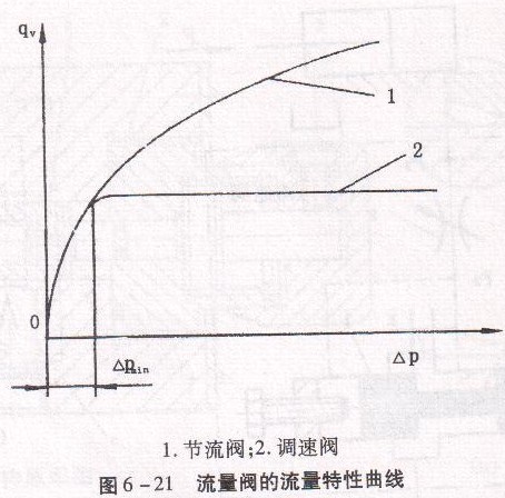 四柱油壓機調速閥的流量特性曲線如圖6 -21所示。由圖可見,當調速閥前、后兩端的壓力差超過最小值.1Pmin以后,流量是穩定的。而在,1Pmin以內,流量隨壓力差的變化而變化,其變化規律與節流閥相一致。這是因為當調速閥的壓差過低時,將導致其內的定差減壓閥閥口全部打開,減壓閥處于非工作狀態,只剩下節流閥在起作用,故此段曲線和節流閥曲線基本一致。